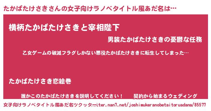 | 男性向けラノベタイトル風あだ名 | 『この素晴らしい世界にたかばたけさきを!』 |