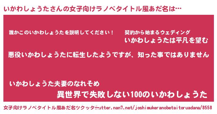 | 胡散臭い通販商品みたいなあだ名 | 『あなたにだけ特別に提供する限定10本のレアな日本酒…その名も「いかわしょうた」』 |