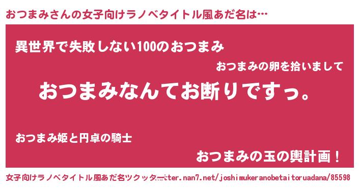 | 男性向けラノベタイトル風あだ名 | 『魔法科高校のおつまみ』 |