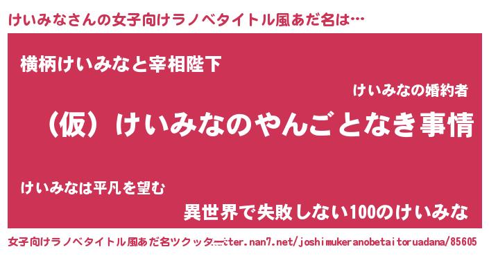 | 男性向けラノベタイトル風あだ名 | 『けいみなの憂鬱』 |