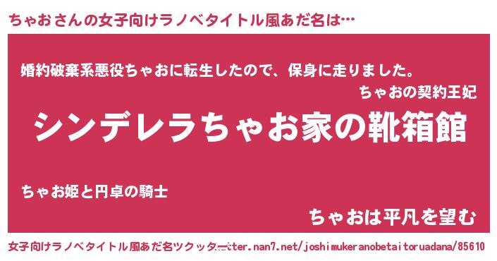 | 萌えアニメ | 主人公(ちゃお)のあだ名『 ちゃぴょん』 |
