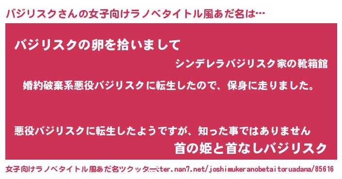 | 胡散臭い通販商品みたいなあだ名 | 『信頼と実績のネックレス…その名も「バジリスク」』 |