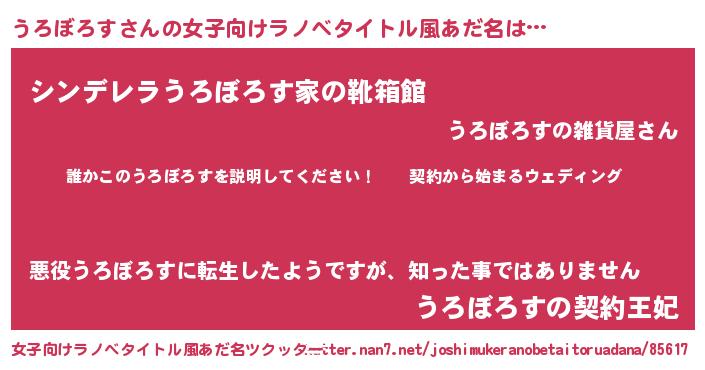 | 胡散臭い通販商品みたいなあだ名 | 『億万長者になれる霊験あらたかなお札…その名も「うろぼろす」』 |