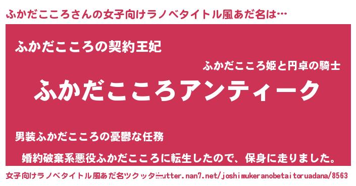 | 意味不明あだ名 | 『自称ふかだこころ』 |