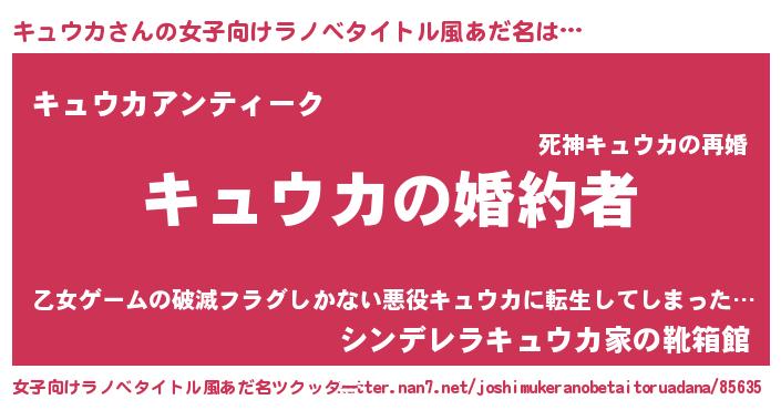 | 胡散臭い通販商品みたいなあだ名 | 『運命の人と巡り会える高級そうな絵画…その名も「キュウカ」』 |