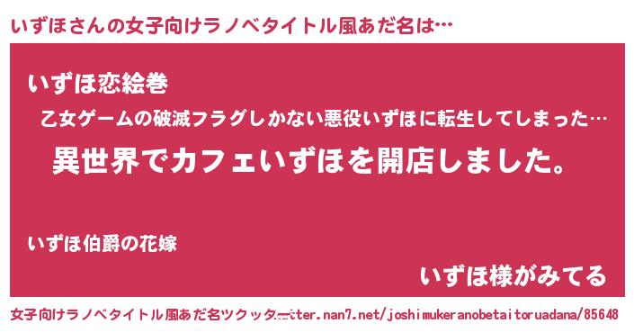 | 男性向けラノベタイトル風あだ名 | 『誰もが恐れるあのいずほが、ぼくの専属メイドになるようです。』 |
