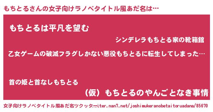 | 意味不明あだ名 | 『住所不定無職もちとる(71歳)』 |