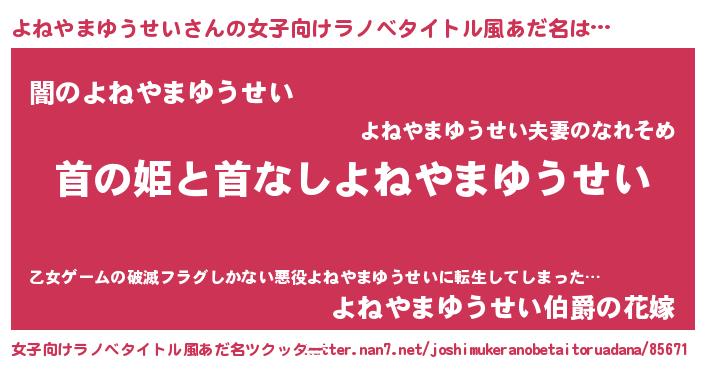 | 男性向けラノベタイトル風あだ名 | 『はたらくよねやまゆうせいさま!』 |