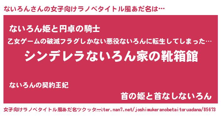 | 男性向けラノベタイトル風あだ名 | 『冴えないないろんの育てかた』 |