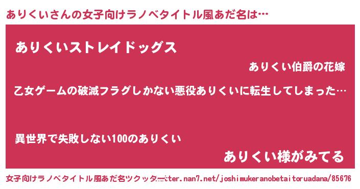 | 男性向けラノベタイトル風あだ名 | 『この素晴らしい世界にありくいを!』 |