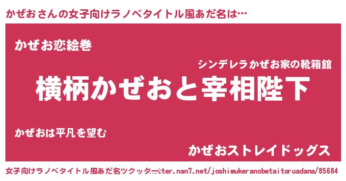 | 男性向けラノベタイトル風あだ名 | 『かぜおに滅ぼされるだけの簡単なお仕事です』 |