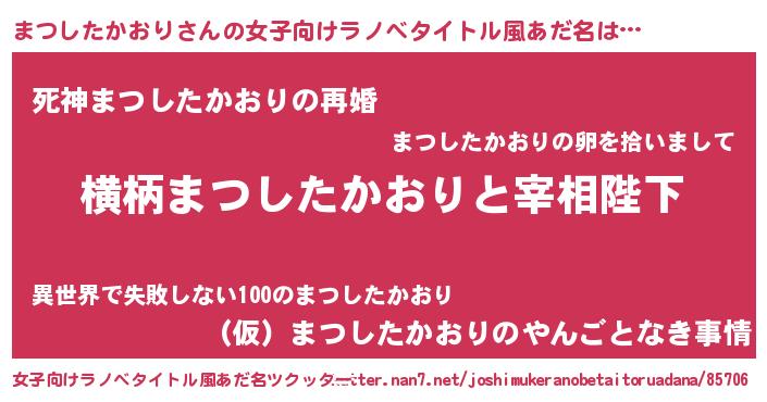 | 男性向けラノベタイトル風あだ名 | 『まつしたかおりに滅ぼされるだけの簡単なお仕事です』 |