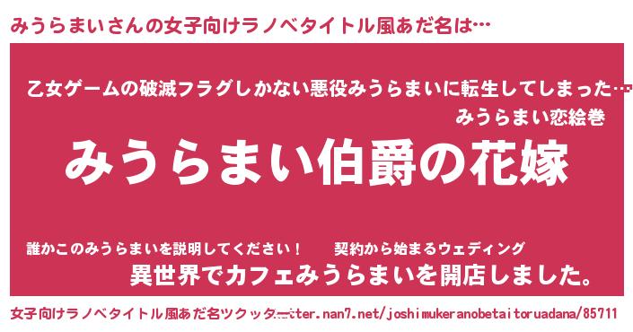 | ファンタジー風あだ名 | 『エターナルミウラマイー』『ミウフェル』 |