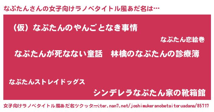 | ヘコむあだ名 | 『なぷにー』『牛乳』『なぷたん(笑)』 |