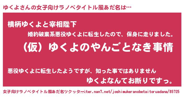 | 男性向けラノベタイトル風あだ名 | 『ゆくよの憂鬱』『魔法科高校のゆくよ』 |