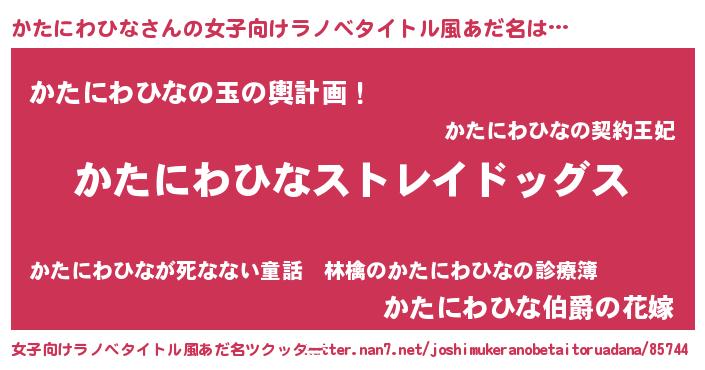 | 男性向けラノベタイトル風あだ名 | 『Re:かたにわひなから始める異世界生活』 |