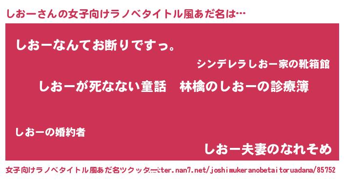 | 男性向けラノベタイトル風あだ名 | 『魔弾の王としおー』 |