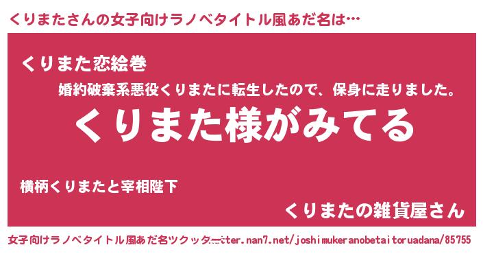 | 胡散臭い通販商品みたいなあだ名 | 『全米が絶賛したサプリメント…その名も「くりまた」』 |