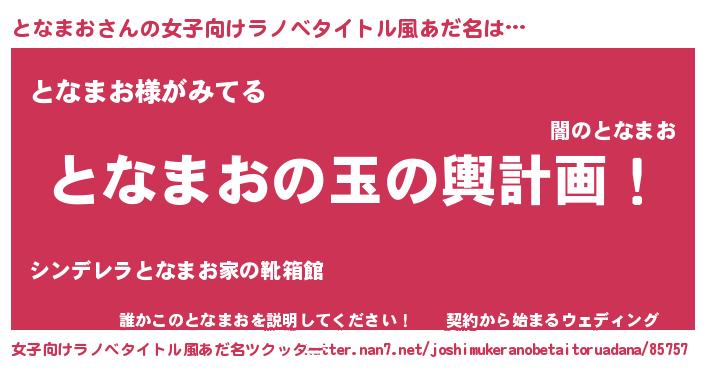 | 恥ずかしいあだ名 | 『トナリンリン』『プリティーとなまお』 |