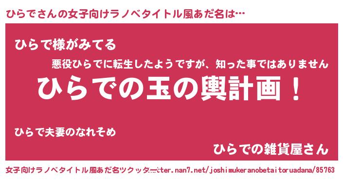 | 胡散臭い通販商品みたいなあだ名 | 『全米が絶賛したサプリメント…その名も「ひらで」』 |