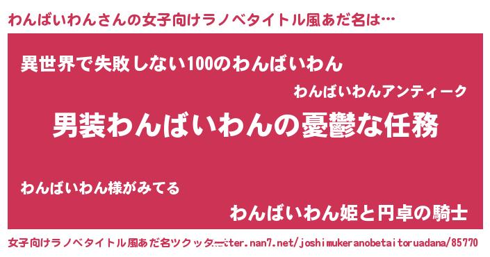 | 男性向けラノベタイトル風あだ名 | 『うちのわんばいわんが世界を掌握している!』 |