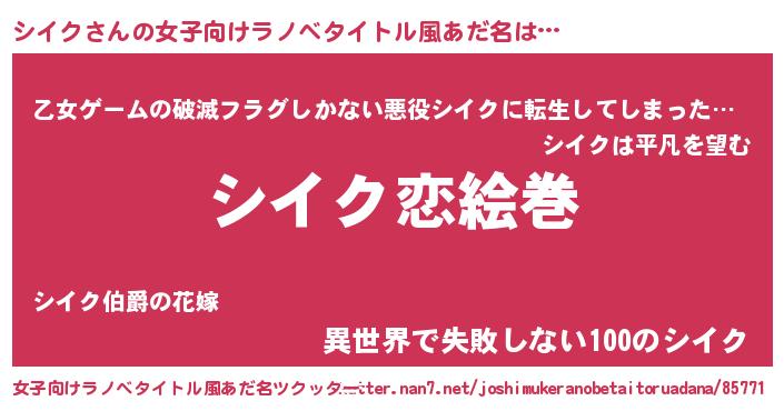 | 男性向けラノベタイトル風あだ名 | 『ノーゲーム・ノーシイク』 |