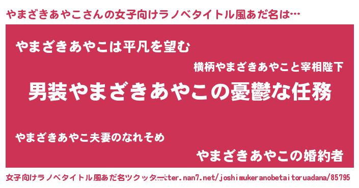 | 男性向けラノベタイトル風あだ名 | 『冴えないやまざきあやこの育てかた』 |