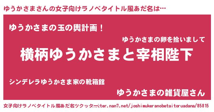 | 男性向けラノベタイトル風あだ名 | 『ゆうかさまに滅ぼされるだけの簡単なお仕事です』 |