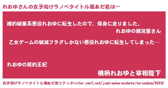 | 意味不明あだ名 | 『住所不定無職れおゆ(62歳)』 |