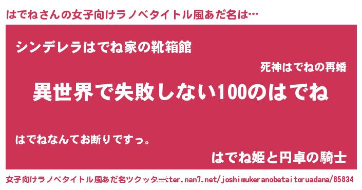 | 胡散臭い通販商品みたいなあだ名 | 『絶対に幸福をもたらす健康食品…その名も「はでね」』 |