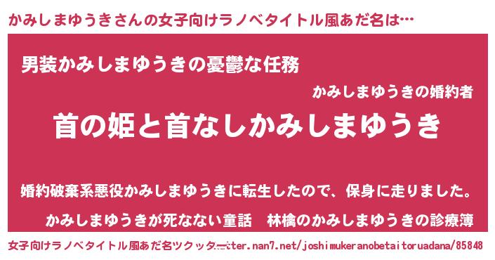 | 男性向けラノベタイトル風あだ名 | 『はたらくかみしまゆうきさま!』 |
