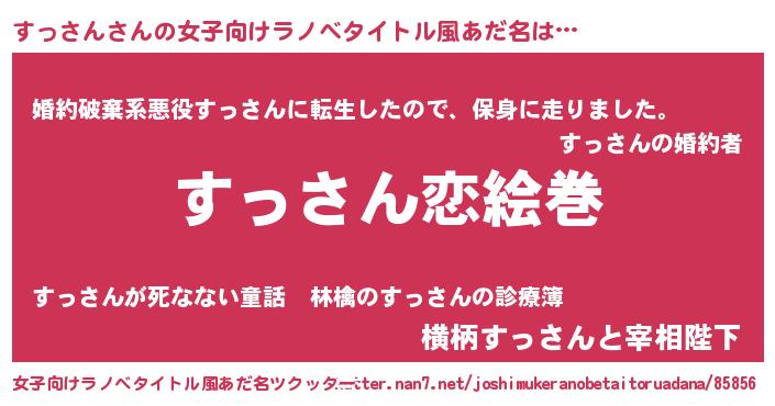 | 男性向けラノベタイトル風あだ名 | 『ノーゲーム・ノースッサン』 |