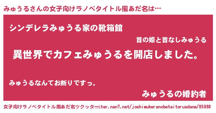 | 意味不明あだ名 | 『永久保存みゅうる』『自称みゅうる』 |