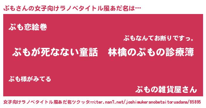 | 男性向けラノベタイトル風あだ名 | 『魔弾の王とぷも』『魔法科高校のぷも』 |