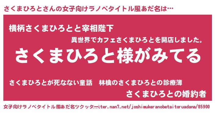 | 男性向けラノベタイトル風あだ名 | 『さくまひろとの嫁は女の子じゃないと思った?』 |