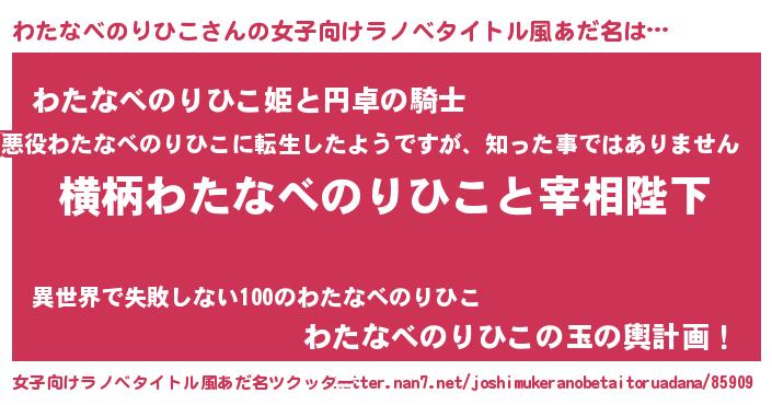 | 男性向けラノベタイトル風あだ名 | 『わたなべのりひこに滅ぼされるだけの簡単なお仕事です』 |