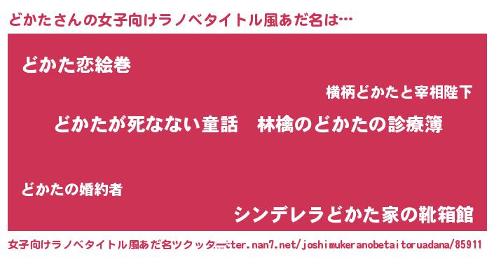 | 意味不明あだ名 | 『住所不定無職どかた(9歳)』『自称どかた』 |