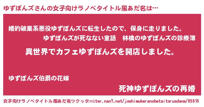 | 男性向けラノベタイトル風あだ名 | 『誰もが恐れるあのゆずぽんズが、ぼくの専属メイドになるようです。』 |