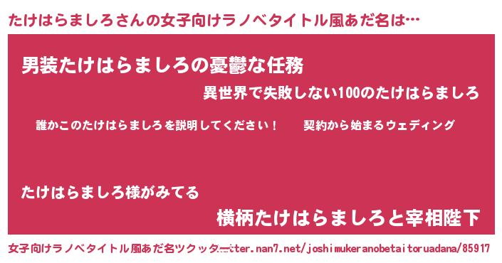 ヘコむあだ名 | 『たけもー』『たけはらましろ(震え声)』 |