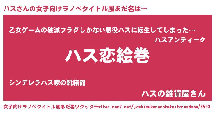 | 男性向けラノベタイトル風あだ名 | 『ノーゲーム・ノーハス』『緋弾のハス』 |