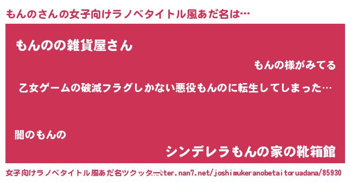 | 男性向けラノベタイトル風あだ名 | 『この素晴らしい世界にもんのを!』 |
