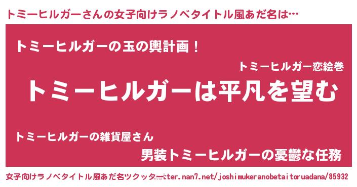 | 男性向けラノベタイトル風あだ名 | 『ダンジョンにトミーヒルガーを求めるのは間違っているだろうか』 |