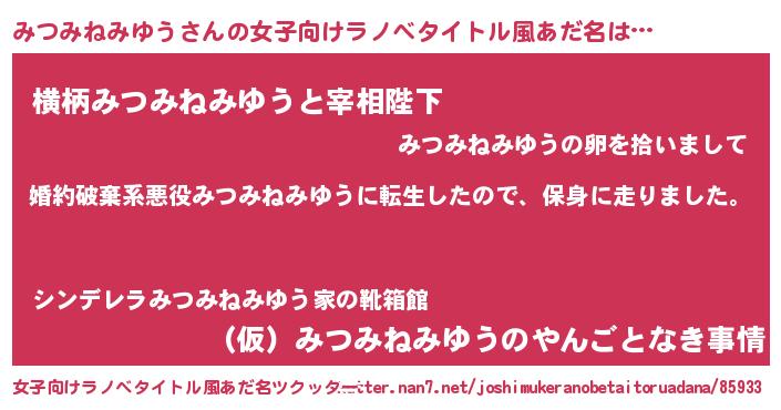 | 伝説のあだ名 | 『伝説の竜騎士みつみねみゆう』 |