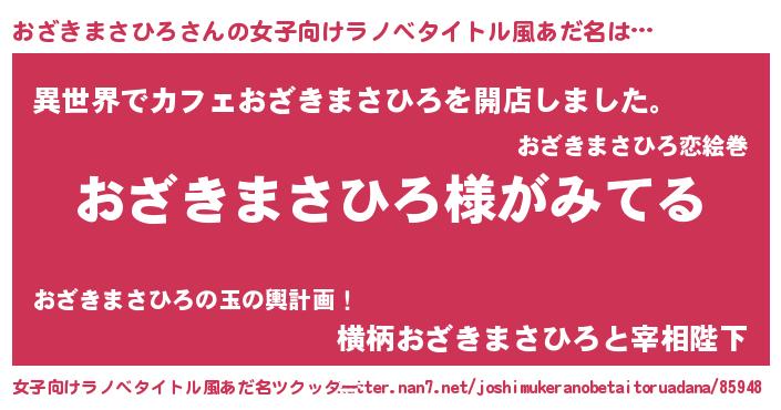 | 男性向けラノベタイトル風あだ名 | 『おざきまさひろの嫁は女の子じゃないと思った?』 |