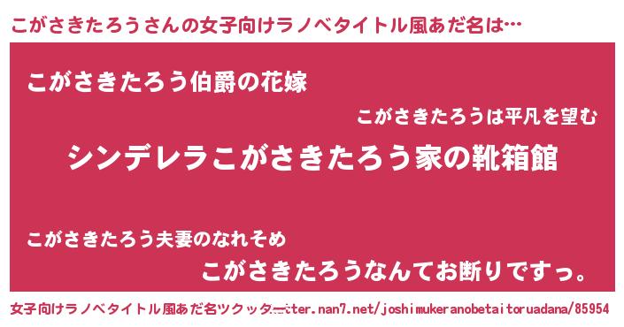 | 胡散臭い通販商品みたいなあだ名 | 『幸せが訪れる高級そうな壺…その名も「こがさきたろう」』 |