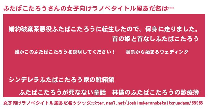 | 男性向けラノベタイトル風あだ名 | 『フタバコタロウアートオンライン』 |