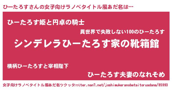 | 男性向けラノベタイトル風あだ名 | 『緋弾のヒータロス』『ひーたろすの憂鬱』 |