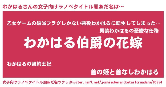 | 男性向けラノベタイトル風あだ名 | 『やはりわかはるの青春ラブコメはまちがっている 』 |
