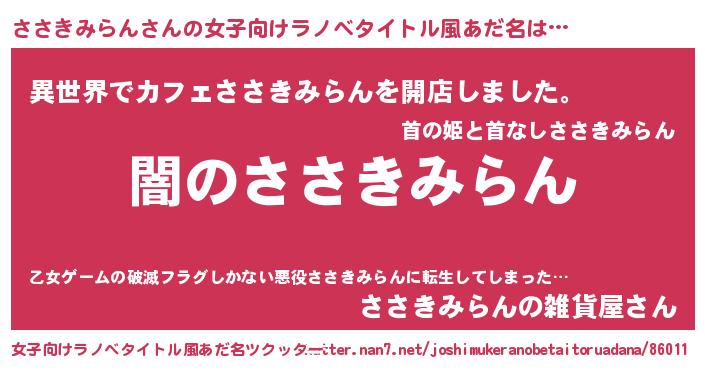 意味不明あだ名 | 『自称ささきみらん』 |
