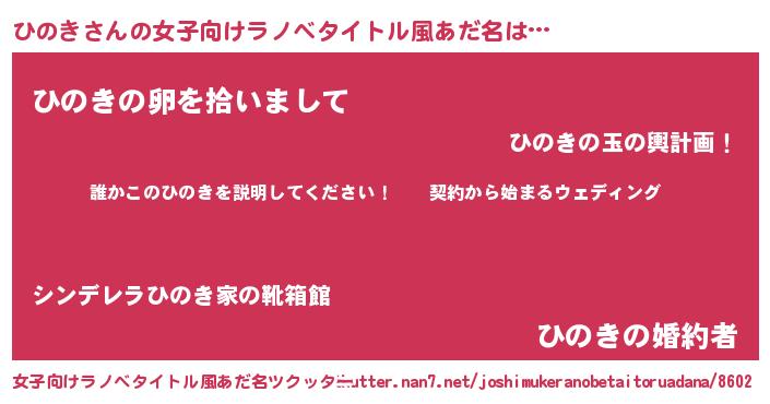 | 男性向けラノベタイトル風あだ名 | 『ヒノキアートオンライン』 |
